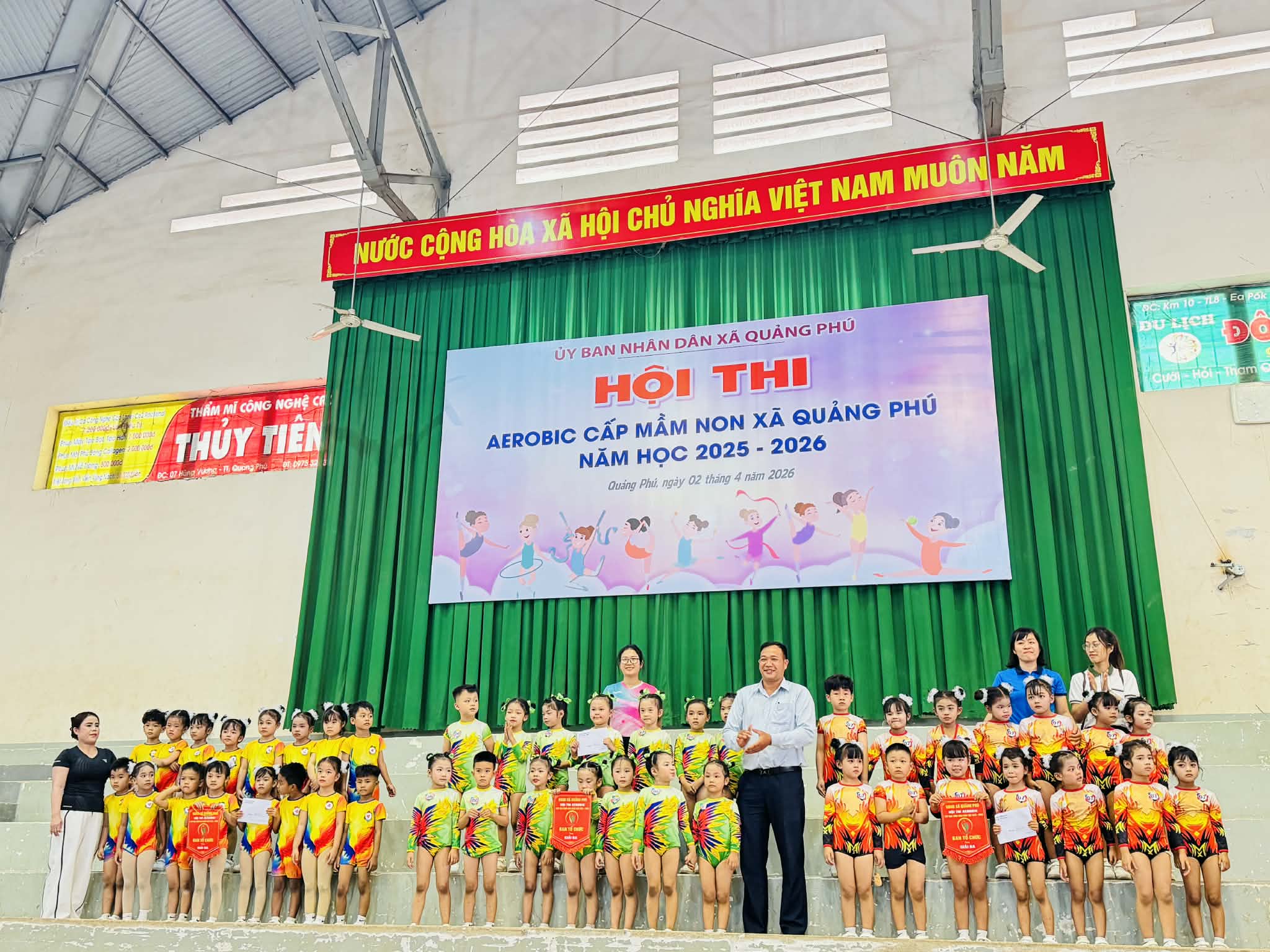 Vừa qua, Hội Thi Aerobic cấp xã đã được diễn ra. Nhằm tạo sân chơi lành mạnh, bổ ích cho trẻ, hoạt động ý nghĩa giúp trẻ phát triển thể lực, rèn luyện sự dẻo dai, khéo léo, cũng như tăng cường sự tự tin và tinh thần đoàn kết trong tập thể